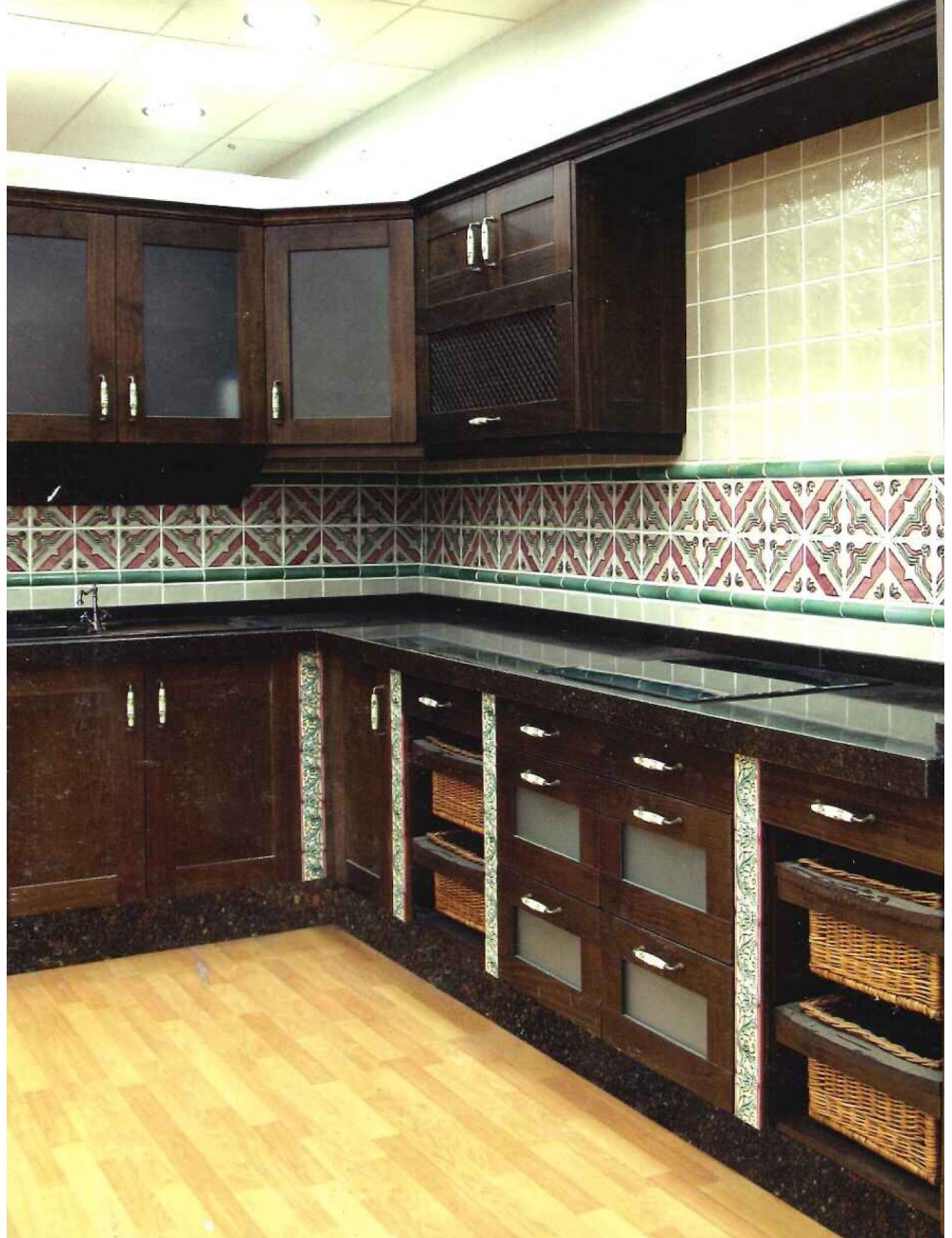 FUENTE 13X13 ALFARERÍA VERDE TINTA PASAJE Y NARANJA FONDO BLANCO