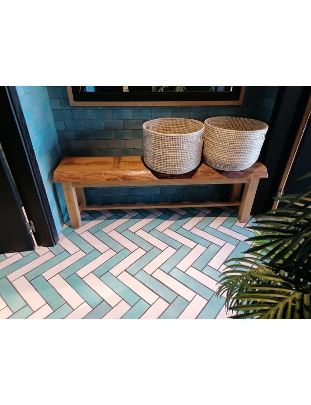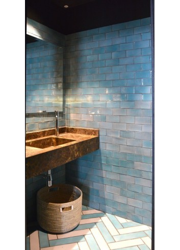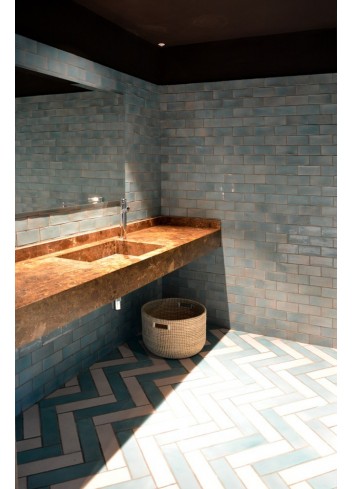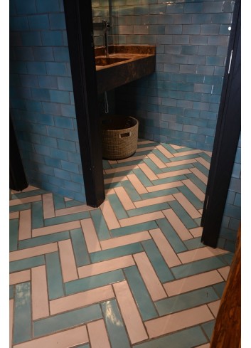 SUELO 7,5X30 ARTESANO TURQUESA Y BLANCO