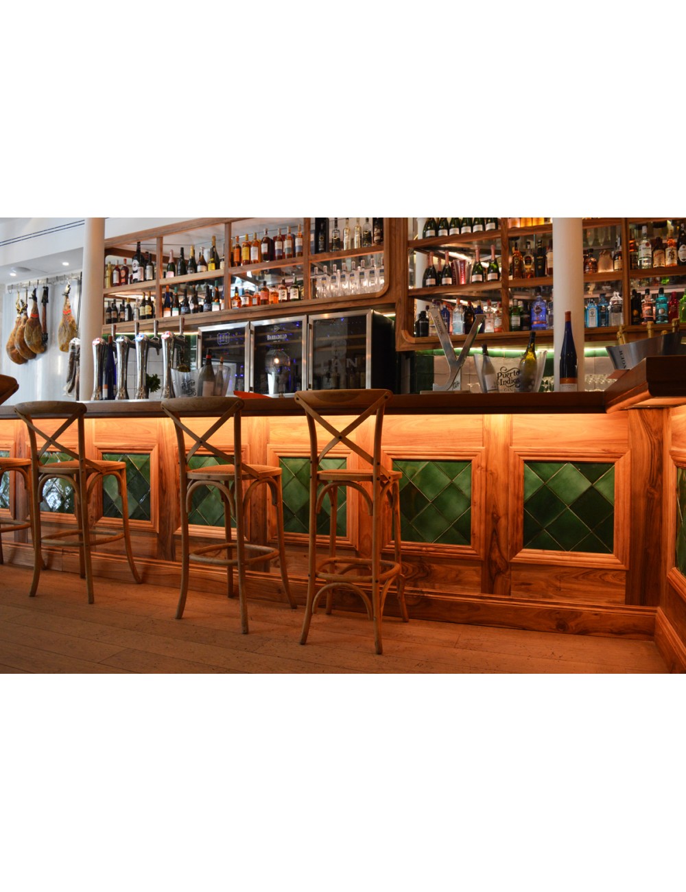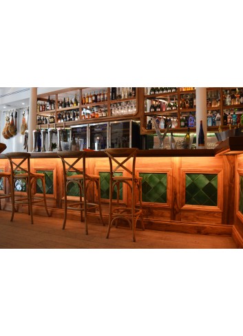 BARRA CON 9,8X9,8 CARTABÓN PINCELADO VERDE TINTA PASAJE Y PILASTRAS