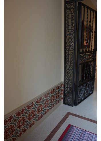 ESCALERA 20X20 GUADALÉN ROJO INGLÉS Y VERDE FONDO CREMA