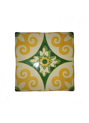 FUENTE 13X13 ALFARERÍA VERDE TINTA PASAJE Y NARANJA FONDO BLANCO