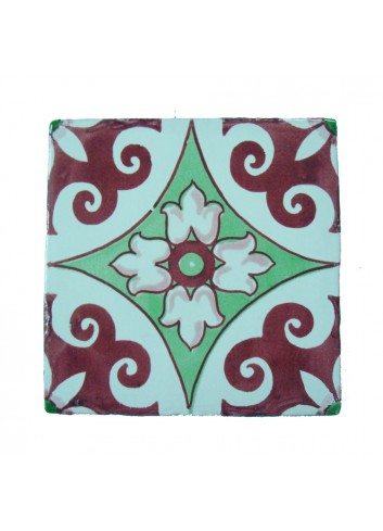 ESCALERA 15X15 NILO BURDEOS Y VERDE TINTA FONDO CREMA